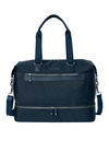 500D x 750D polyester with knitted fabric backing 420D polyester lining Genuine leather trim and details Front zippered pocket for decoration access Zippered main compartment with interior slip pocket and zippered pocket Zippered shoe compartment at base Dedicated padded laptop compartment Double leather-wrapped web handles Removable, adjustable shoulder strap with shoulder pad Leather feet at base Leather zipper pulls with Brooks Brothers logo rivet Exterior debossed Brooks Brothers leather label Trolley pass through with concealed zippered pocket Laptop compartment: 11'h x 15.75'w; fits most 17' laptops Dimensions: 14'h x 19.25'w x 9'd Capacity: 2,440 cu. in./40 L Weight: 3.5 lbs./1.6 kg Note: Bags not intended for use by children 12 and under.