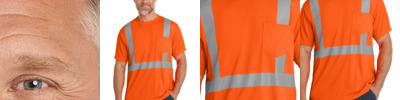 This breathable, moisture-wicking mesh tee delivers high visibility and on-the-job comfort. 4.1-ounce, 100% polyester birdseye mesh UPF rating of 30 Durable, reflective 2-inch tape meets ANSI 107 requirements and provides 360-degree visibility on body 1x1 rib knit neck Back neck tape Left chest pocket