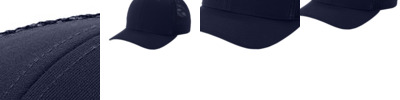 96/4 poly/spandex front panels 100% poly mesh back panels Structured Mid-profile Curved bill Dyed-to-match undervisor Moisture-wicking sweatband 7-position adjustable snapback closure