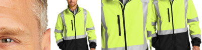 This warm performance soft shell combines superior weather protection with the highest class of visibility. 100% polyester woven shell with durable water-repellent (DWR) finish bonded to a water-resistant, breathable film insert and a 100% polyester microfleece lining Black bottom front and lower sleeves for a cleaner appearance Fabric waterproof rating: 5000MM Fabric breathability rating: 5000G/M2 Full-length interior storm flap with chin guard Durable, reflective 2-inch tape meets ANSI 107 requirements and provides 360-degree visibility on body and sleeves; tape is bonded to fabric Molded right chest, hand and center front zippers with rubber pulls Mic clips at shoulders Elastic cuffs with adjustable hook and loop closures and rubber tabs Adjustable drawcord hem This garment must be fully zipped to be in compliance with ANSI 107 standards
